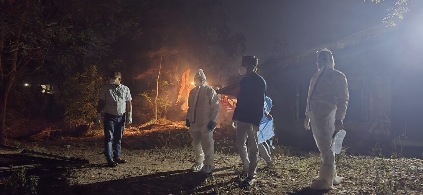 नगर निगम, पशु चिकित्सा विभाग और स्वास्थ्य विभाग की टीम ने पूरी रात संयुक्त अभियान चलाकर संक्रामक रोग प्रोटोकॉल के तहत पोल्ट्री फार्म की सभी मुर्गी, चूज़े, अंडे और कुक्कुट आहार को नष्ट किया। इसके लिए मुर्गों और चूजों को मारकर जमीन में दफनाया गया। इसके लिए पोल्ट्री फार्म परिसर में पूरे सुरक्षात्मक उपायों के साथ जेसीबी से गड्ढा खोदकर उसमें नमक और चुने की लेयर बिछा कर मुर्गियों और चूजों को दफनाया गया और ऊपर से फिर नमक और चुने की लेयर डाली गई। इसी प्रकार अंडों को भी नष्ट किया गया। जिससे संक्रमण न फैले। इसके साथ ही परिसर को संक्रमण मुक्त करने डिसइनफेक्शन किया जा रहा है। कलेक्टर श्री कार्तिकेया गोयल पूरी रात इस कार्रवाई का अपडेट लेते रहे।