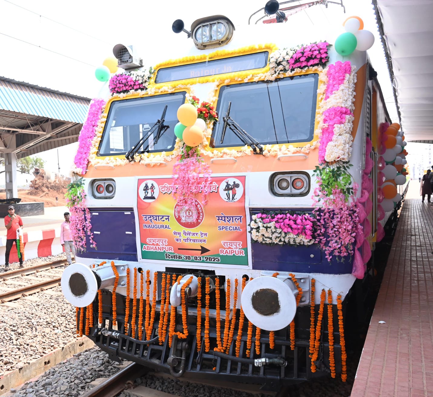 प्रधानमंत्री श्री नरेंद्र मोदी ने 30 मार्च को बिलासपुर के मोहभट्टा ग्राम में आयोजित आमसभा और लोकार्पण शिलान्यास समारोह में वीडियो कॉन्फ्रेंसिंग के माध्यम से अभनपुर-रायपुर मेमू ट्रेन सेवा का शुभारंभ कर नया रायपुर को भारतीय रेल नेटवर्क से सीधे जोड़ने की ऐतिहासिक शुरुआत की।
