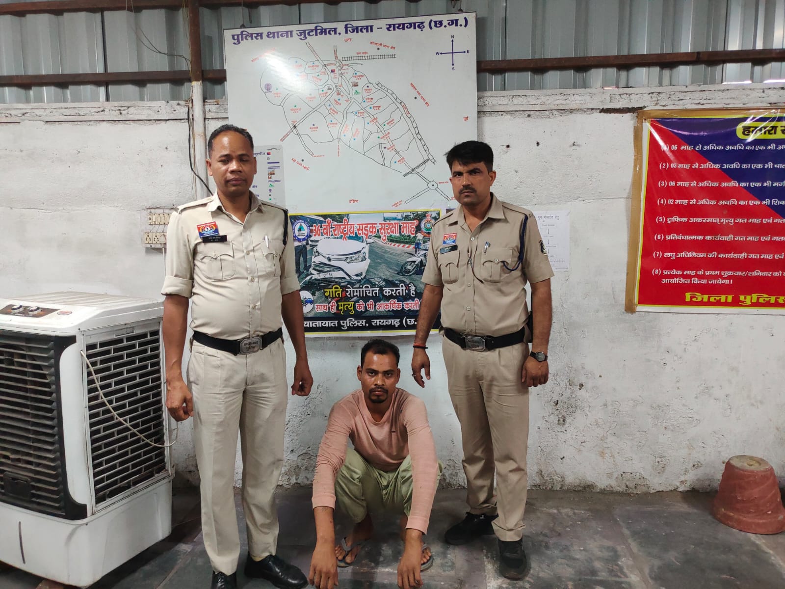 पुलिस ने तत्काल कार्रवाई करते हुए राधेश्याम सारथी (27), पिता मुनीराम सारथी, निवासी छातामुड़ा को हिरासत में लिया और जूटमिल थाना लाया गया। आरोपी के खिलाफ धारा 170/126, 135(3) BNSS के तहत मामला दर्ज कर उसे एसडीएम न्यायालय में पेश किया गया।