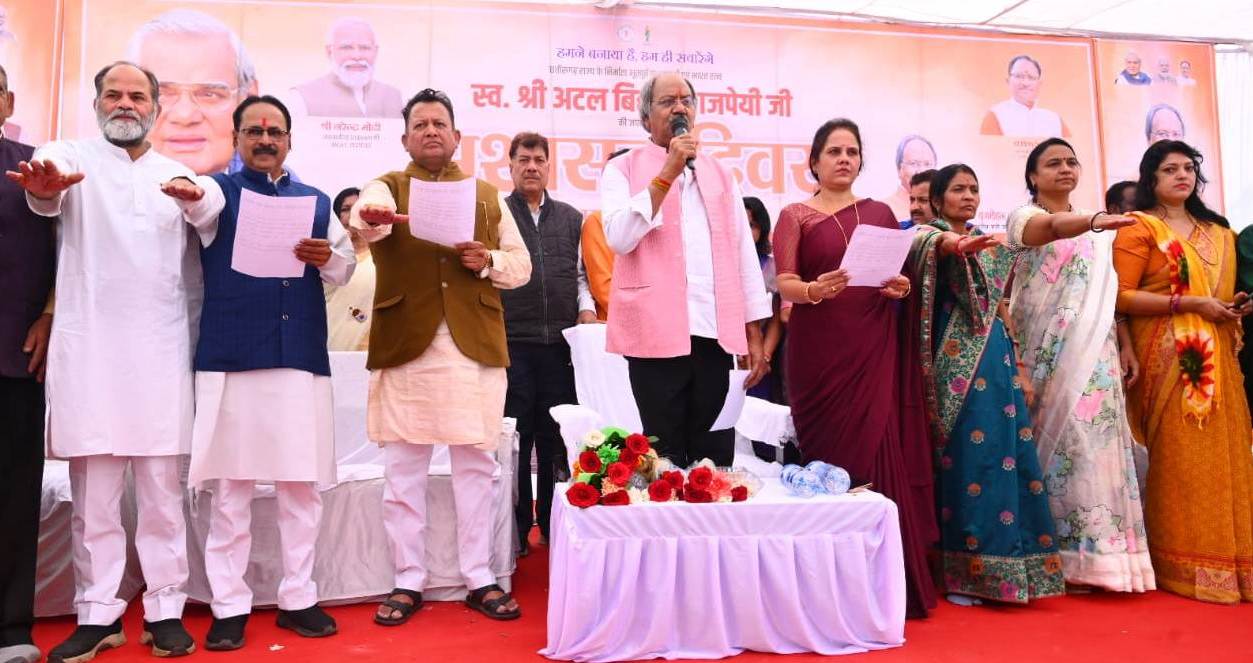 कैबिनेट मंत्री श्री अग्रवाल ने कहा कि वर्तमान प्रधानमंत्री श्री नरेन्द्र मोदी ने जिस प्रकार से कुशल नेतृत्व से पूरे विश्व में अपनी पहचान बनाई है, उसी प्रकार पूर्व प्रधानमंत्री स्वर्गीय श्री वाजपेयी ने अपनी नेतृत्व क्षमता से विश्व पटल पर अपनी गहरी छाप छोड़ी। उन्होंने सुशासन दिवस पर पूर्व प्रधानमंत्री श्री वाजपेयी का पुण्य स्मरण करते हुए कहा कि उन्होंने देश के विकास में हरसंभव योगदान दिया। उन्होंने पक्की सकड़ों का जाल बिछाया। प्रधानमंत्री ग्रामीण सड़क योजना के तहत गांव-गांव पक्की सड़कों से जुड़ गए हैं। बच्चों की शिक्षा को प्राथमिकता देते हुए उन्होंने सर्व शिक्षा अभियान की शुरूआत की। उनके कार्यकाल के दौरान ही मोबाईल नेटवर्क पूरे देश में फैला।