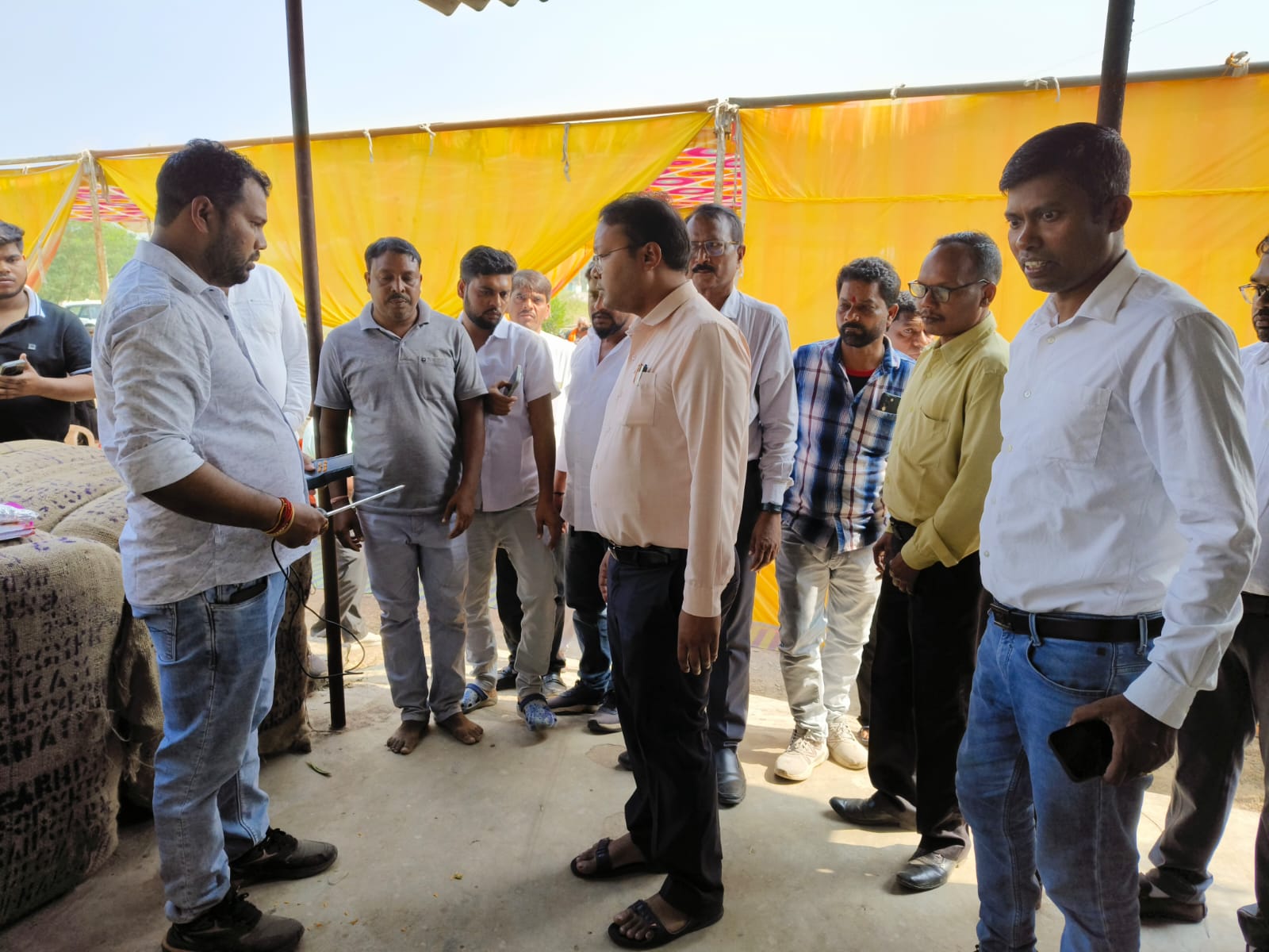 कलेक्टर श्री अमृत विकास तोपनो ने नारियल फोड़कर और किसान को माला पहनाकर धान खरीदी कार्य का किया शुभारंभ