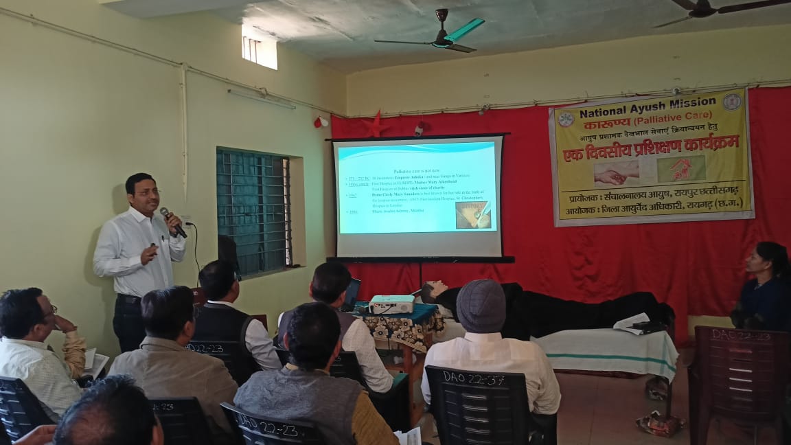 केरल से प्रशिक्षण प्राप्त किये डॉ. मिश्रा ने शासन निर्देश में कारुण्य आयुष प्रशामक देखभाल सेवा रायगढ़ जिले में प्रारंभ करने के उद्देश्य से इन्हें प्रशिक्षण प्रदान किया। अब रायगढ़ जिले में भी कारुण्य आयुष प्रशामक देखभाल सेवा अपनी उपस्थिति दर्ज कराई है। इस प्रशिक्षण का उद्देश्य आयुष चिकित्सकों और नर्सिंग स्टाफ को मरीजों की बेहतर देखभाल करने के लिए तैयार करना है ताकि जीवन के अंतिम चरण में उनके लिए गुणवत्तापूर्ण और आरामदायक देखभाल सुनिश्चित की जा सके।