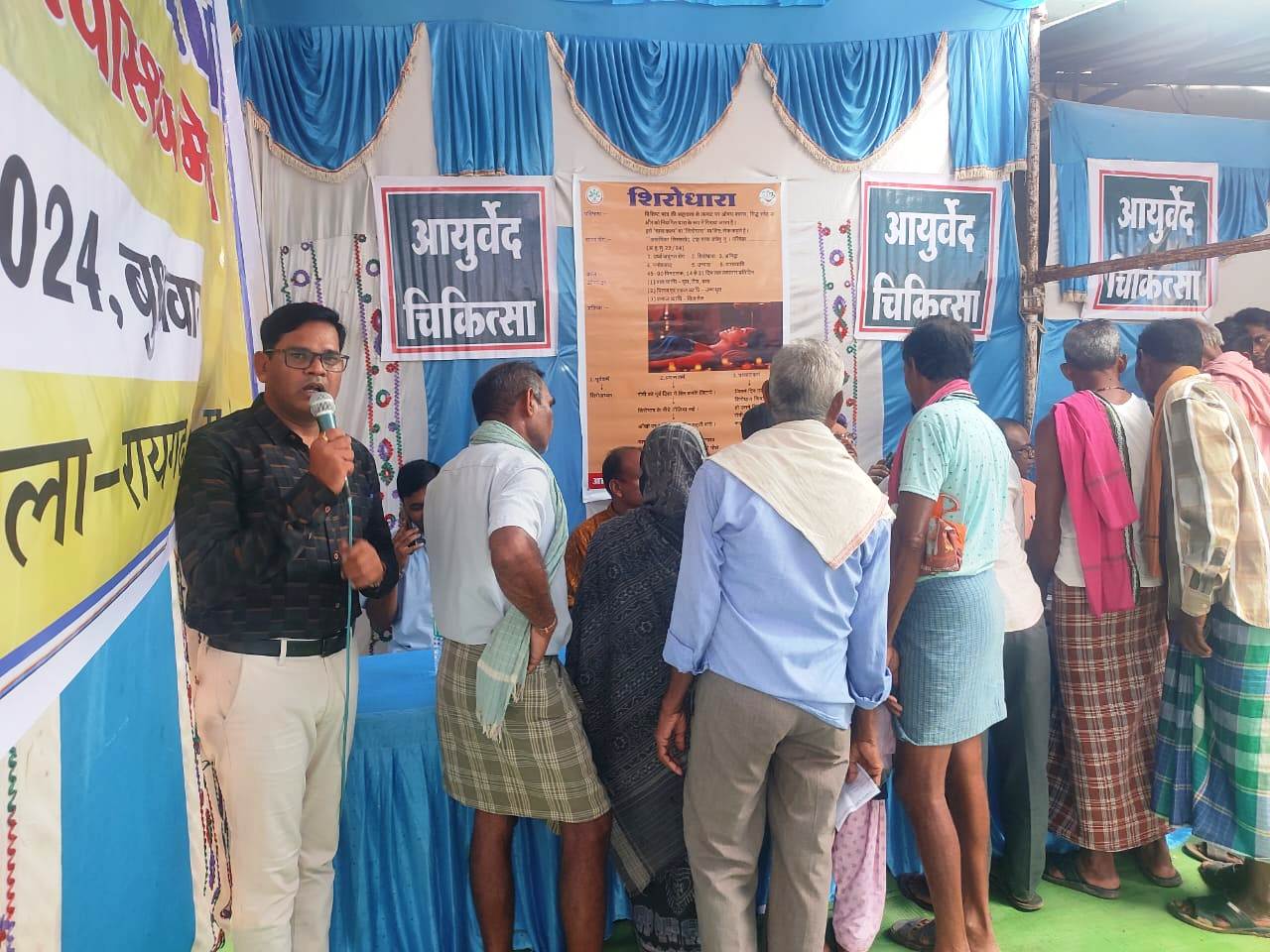 आयुर्वेद चिकित्सा अधिकारी डॉ.अजय नायक ने स्वागत भाषण देते हुए आयुष स्वास्थ्य मेला आयोजन करने का उद्देश्य बताया। उन्होंने बताया कि आम जनता को ज्यादा से ज्यादा आयुष पद्धति द्वारा लाभ देना है। इस पद्धति से इलाज में कोई साईड इफेक्ट नहीं होते हैं। लोगों का झुकाव पुरानी पद्धति की ओर बढ़ते देखकर शासन द्वारा विभिन्न योजना संचालित किया जा रहा है। प्रत्येक व्यक्ति को निरोगी रखना छत्तीसगढ शासन की मंशा है। आयुष्मान आरोग्य मंदिर एवं आयुष ग्राम के बारे में विस्तार से जानकारी दी गई। मेला में जड़ी बूटियों की प्रदर्शनी, रक्त परीक्षण, रोग प्रतिरोधक क्षमता बढ़ाने हेतु काढ़ा वितरण की व्यवस्था की गई थी। मेला में वात रोग, आमवत, उदर रोग, ज्वर, कास प्रतिश्यय, श्वास, अर्श, भगंदर, उच्च रक्तचाप, मधुमेह, स्त्री रोग, दौरबल्य, नेत्र, कर्ण इत्यादि रोग का इलाज किया गया। साथ ही साथ परहेज पर भी बहुत समझाइश दी गई। ऋतु अनुसार लोगों को खान-पान आहार विहार दिनचर्या के बारे में जानकारी दी गई।
