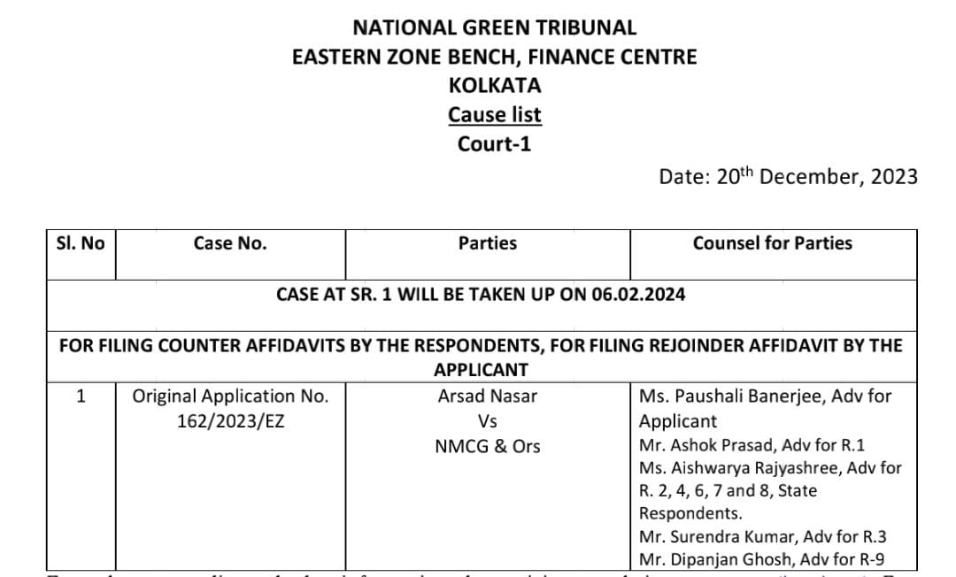 साहिबगंज। ज़िले के चर्चित सामाजिक कार्यकर्ता सह पर्यावरण प्रेमी सैयद अरशद नसर द्वारा झारखंड राज्य के एक मात्र जिला साहिबगंज से गुज़रने वाली गंगा नदी को प्रदूषित होने से व जलीय जीव जंतु व संरक्षित डाल्फिंस को बचाने हेतु सुबे के खान निदेशक,नमामी गंगा मिशन नई दिल्ली के डायरेक्टर,जिले के डीसी,डीटीओ व स्टोन बोल्डर सप्लायर मां तारा कंस्ट्रक्शन कंपनी मालदा व जी.के इंटरप्राइजेज मुजफ्फरपुर को प्रतिवादी बनाते हुए एनजीटी ईस्टर्न जोन कोलकाता बेंच में याचिका संख्या ओए संख्या -162/2023 बीते माह दायर कर एनजीटी से गुहार लगाया था कि इन लोगों के आपसी सांठ गांठ से नियम विरुद्ध तरीके से बड़े पैमाने पर स्टोन बोल्डर भेज कर गंगा नदी को प्रदुषित करने के साथ ही साथ जलीय जीव जंतु व संरक्षित डाल्फिंस को भारी पैमाने पर नुक्सान पहुंचाने के लिए इन लोगों पर कड़ी से कड़ी दंडात्मक कार्रवाई व पर्यावरणीय क्षतिपूर्ति जुर्माना लगाने की मांग की थी.जिसपर बीते माह एनजीटी के जुडिशियल मेंबर बी.अमित स्थालेकर व एक्सपर्ट मेंबर डा.अरूण कुमार वर्मा ने सुनवाई करते हुए जिले के डीसी के नेतृत्व में तीन सदस्यीय जांच समिति गठित करते हुए घटना स्थल की स्थलीय जांच कर रिपोर्ट समर्पित करने व सभी प्रतिवादियों को हलफनामा के माध्यम से जवाब दाखिल करने का आदेश पारित किया था.जिसकी आज सुनवाई होने वाली थी जो अपरिहार्य कारणों से कोर्ट के नहीं बैठने के चलते अब इस मामले की सुनवाई अगले वर्ष 6 फरवरी को होगी.सुनवाई टलने से पुलिस प्रशासनिक अधिकारियों व पत्थर कारोबारियों ने जहां एक तरफ़ राहत की सांस ली तो दुसरी तरफ़ पर्यावरण प्रेमियों में मायुसी छा गई.अब सबकी निगाहें 6 फरवरी की सुनवाई तिथि पर टिक गई है.
