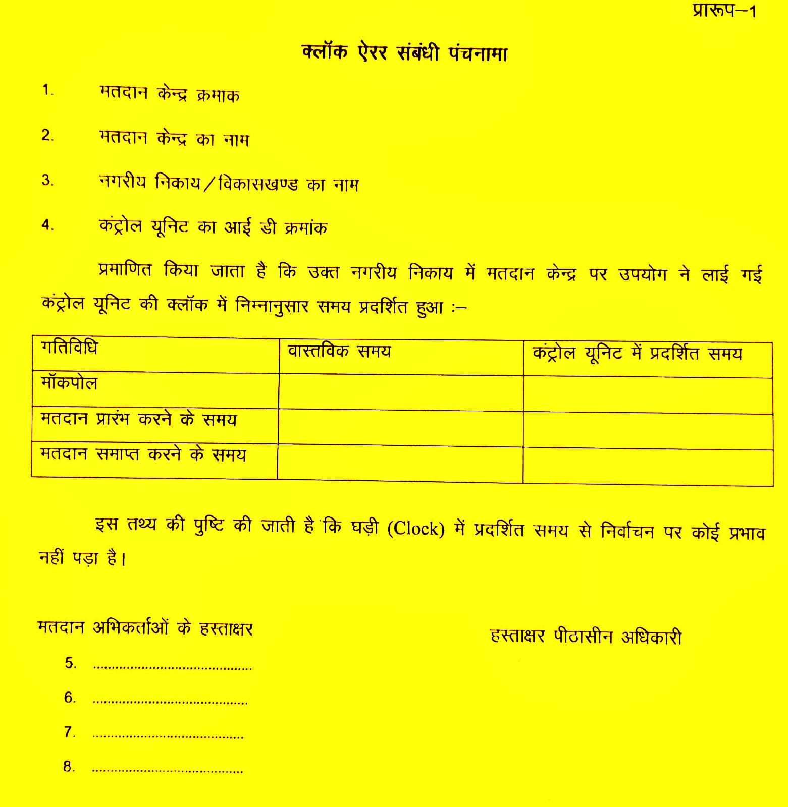 एमसीबी/21 जनवरी 2025 / नगरीय निकाय निर्वाचन 2025 के लिए विभिन्न जिलों में ई. व्ही.एम. की एफ.एल.सी. कार्य जारी है। एफ.एल.सी. के दौरान क्लॉक ऐरर ( Clock Error ) के संबंध में निर्देशों का पालन सुनिश्चित करने हेतु केवल (Clock Error) (समय में अंतराल) होने पर ई.व्ही.एम. को खराब नहीं माना जाए। ऐसे सभी ई.व्ही.एम. को निर्वाचन में प्रयोग में लाया जाये। सी.यू में प्रदर्शित समय के संबंध में एक पंचनामा पीठासीन अधिकारी द्वारा दिये गये प्रारूप में तैयार किया जायेगा। उक्त पंचनामे पर मतदान अभिकर्ता के भी हस्ताक्षर प्राप्त किये जाये एवं पंचनामा पीठासीन की डायरी में रखा जाये। पीठासीन अधिकारी इससे अवगत हो। क्लॉक ऐरर संबंधी पंचनामा में मतदान केंद्र क्रमांक, मतदान केंद्र का नाम, नगरीय निकाय एवं विकासखण्ड कंट्रोल यूनिट का आई.डी. क्रमांक के साथ प्रमाणित किया जायेगा कि उक्त नगरीय निकाय में मतदान केंद्र पर उपयोग में लाई गई कंट्रोल यूनिट की क्लॉक में मॉकपोल गतिविधी की समय एंव वास्तविक समय तथा कंट्रोल यूनिट में प्रदर्शित समय, मतदान प्रारंभ करने के समय का वास्तविक समय तथा कंट्रोल यूनिट में प्रदर्शित समय और मतदान समाप्त कराने का समय का वास्तविक समय के साथ कंट्रोल यूनिट में प्रदर्शित समय को नोट किया जायेगा। तत्पश्चात् तथ्य की पुष्टि की जायेगी कि घड़ी ( Clock ) में प्रदर्शित समय से निर्वाचन पर कोई प्रभाव नहीं पड़ा है। इसके बाद पंचनामा में मतदान अभिकर्ताओं तथा पीठासीन अधिकारी के हस्ताक्षर होंगे।