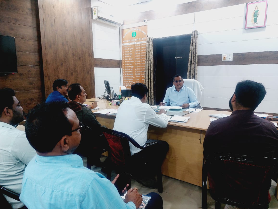रायगढ़।निगम कमिश्नर श्री बृजेश सिंह क्षत्रिय की अध्यक्षता में आज निगम कार्यायल में समय सीमा की बैठक ली गई बैठक के दौरान निगम कमिश्नर श्री क्षत्रिय ने लंबित फाइलों का जल्दी निराकरण करने के निर्देश दिए। जगतपुर में प्राथमिक शाला मतदान केंद्र भवन को डिस्मेंटल की प्रक्रिया जल्द शुरू करने को कहा।