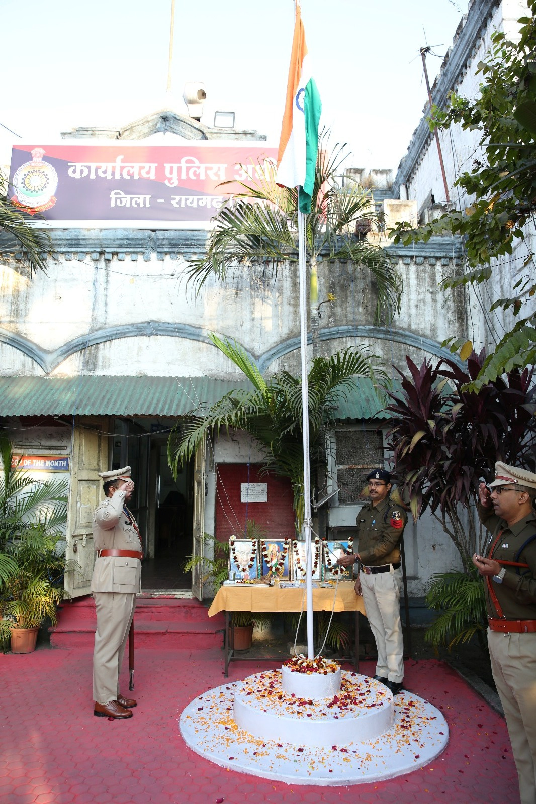 गणतंत्र दिवस पर रायगढ़ पुलिस कार्यालय और थाना, चौकियों में ध्वजारोहण, शहीद परिवारों का सम्मान