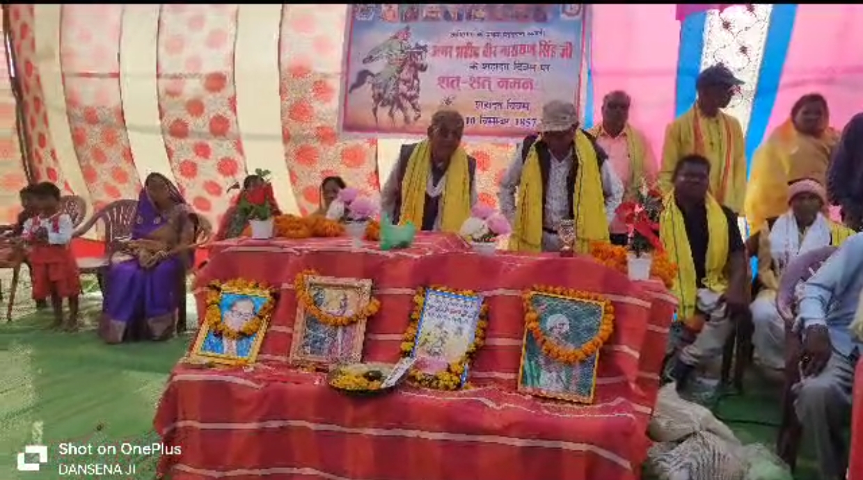 खरसिया। ग्राम तिऊर के शक्ति बुढादेव के पावन स्थल में अमर शहीद वीर नारायण सिंह की शहादत दिवस बड़ी धूमधाम से मनाया गया सर्वआदिवासी समाज द्वारा आयोजित कार्यक्रम गाँव में रैली निकालकर शहीद वीर नारायण के बलिदान को जन जन तक संदेश दिया गया कार्यक्रम की शुरुआत बुढादेव, एवं शहीद वीर नारायण सिंह के छायाचित्र पर माला अर्पण कर दी प्रज्वलित किया गया तत्पश्चात पूजा अर्चना किया गया