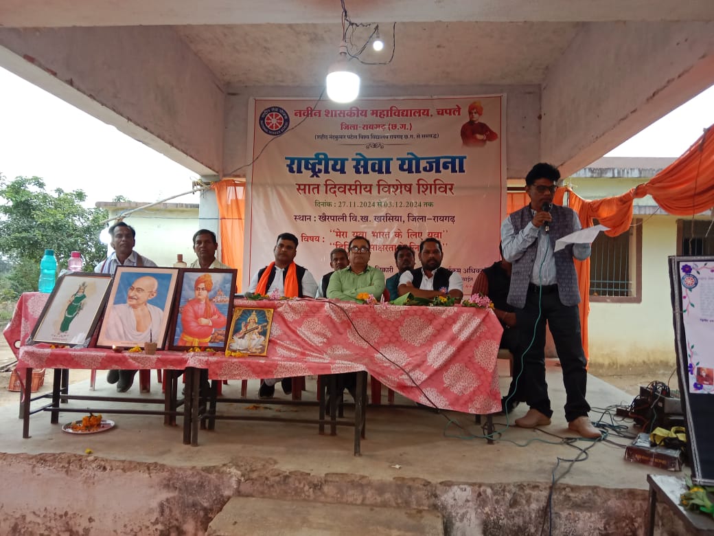 खरसिया। नवीन शासकीय महाविद्यालय चपले के राष्ट्रीय सेवा योजना इकाई सात दिवसीय विशेष शिविर का आयोजन ग्राम पंचायत खैरपाली में दिनांक 27.11.2024 से 3.12.2024 तक रहा। आज शिविर के सातवां दिवस कार्यक्रम अधिकारी प्रो.एम.एल.पटेल सर के मार्गदर्शन में स्वयंसेवक रंजिता, कुंती, काजल, लीना, नमिता और वेदप्रकाश और समस्त स्वयंसेवकों ने वह शक्ति हमें दे न दाता, पी.टी और योगा के साथ दिन का शुभारंभ किया। स्वामी विवेकानंद और महात्मा गांधी दल स्वयंसेवकों द्वारा राष्ट्रीय सेवा योजना के प्रेरक नारे और प्रेरक गीत को गाते और दोहराते हुए पुरी ऊर्जा और उत्साह के साथ प्रभात फेरी निकाली गई और पंचायत भवन खैरपाली की प्रांगण की साफ सफाई की गई और जल स्रोत के आसपास की साफ सफाई की गई जिसमें चंद्रकला, विमला, प्रेमलता, सुमित, तपस्विनी, देवकुमारी, संजय, खुशी, आराधना, प्रीति, मनीषा, सीमा, प्रदूमन, जितेश, विश्वजीत गुणनिधि पुष्पेंद्र अमन पटेल और कमलेश ने विशेष योगदान दिया। आज का चाय नाश्ता एवं भोजन व्यवस्था लक्ष्मीबाई दल वर्षा, गोमती, भोजराम, सानिया, वर्षा एवं साथी शामिल रहे। राष्ट्रीय सेवा योजना कार्यक्रम अधिकारी प्रो.एम.एल.पटेल सर जी द्वारा कार्यक्रम में प्रत्यक्ष एवं अप्रत्यक्ष रूप से सहयोग प्रदान करने वालों को सहृदयता पूर्वक धन्यवाद ज्ञापित किया गया। कार्यक्रम का शुभारंभ सर्वप्रथम सरस्वती मां की पूजा एवं वंदन कर किया गया तत्पश्चात स्वयं सेवकों द्वारा अतिथियों का पुष्प गुच्छ से बैच लगाकर स्वागत किया गया। इसके उपरांत काजल एवं साथी द्वारा स्वागत गीत प्रस्तुत किया गया। समापन समारोह में मुख्य अतिथि श्री पुरुषोत्तम पटैल एवं विशिष्ट अतिथि जीवधन पटैल तथा श्री हरि नारायण पटैल, दिनेश पटैल, श्याम सुंदर पटैल,नूतन डनसेना, ए.के.त्रिवेदी और हरिओम जी उपस्थित रहे। पुरुषोत्तम जी द्वारा राष्ट्रीय सेवा योजना की सफलतापूर्वक पूर्ण होने पर स्वयं सेवकों को शुभाशीष एवं उनके उज्जवल भविष्य की कामना की गई। कार्यक्रम के अंत में नवीन शासकीय महाविद्यालय चपले के प्राचार्य महोदय द्वारा मुख्य अतिथियों का आभार व्यक्त करते हुए धन्यवाद ज्ञापित किया गया। कार्यक्रम में महाविद्यालय नोडल अधिकारी गोविंद सिंह राठिया, राष्ट्रीय सेवा योजना सहायक कार्यक्रम अधिकारी डॉ प्राची थवाईत, एस.के.मेहर, संगीता सिदार, टी. आर.प्रधान, जयश्री माझी, राजेश लहरे का विशेष सहयोग एवं योगदान रहा।
