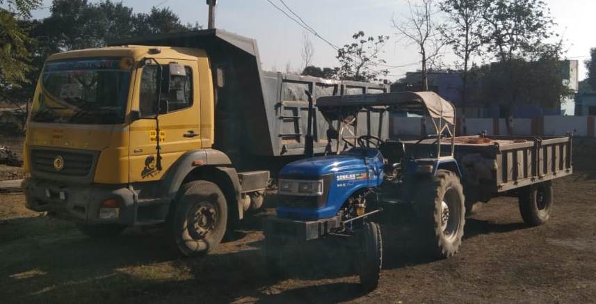 तीन ट्रैक्टर, एक हाईवा जब्त, अवैध उत्खनन व परिवहन पर की गई कार्यवाही