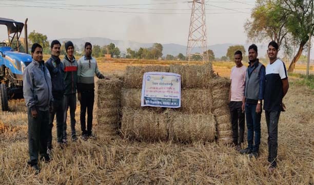 धान के पैरा जलाने की रोकथाम हेतु पैडी बेलर से बण्डल बनाने का जीवन्त प्रदर्शन