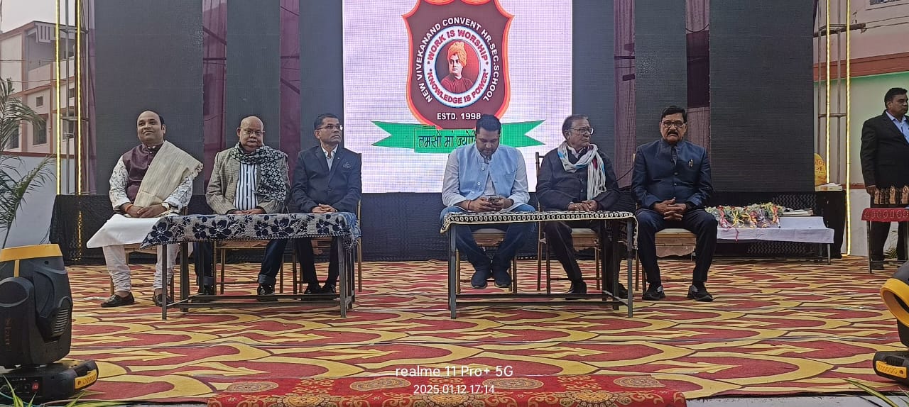 खरसिया।खरसिया तहसील के ठुसेकेला स्थित न्यू विवेकानंद कॉन्वेंट हायर सेकेंडरी स्कूल में रविवार, 12 जनवरी 2025 को वार्षिकोत्सव ‘अभिनंदन’ का भव्य आयोजन किया गया। यह कार्यक्रम शाम 4 बजे स्कूल प्रांगण में प्रारंभ हुआ। मुख्य अतिथि के रूप में खरसिया विधानसभा क्षेत्र के विधायक और छत्तीसगढ़ सरकार के पूर्व कैबिनेट मंत्री उमेश नंदकुमार ने कार्यक्रम की शोभा बढ़ाई।