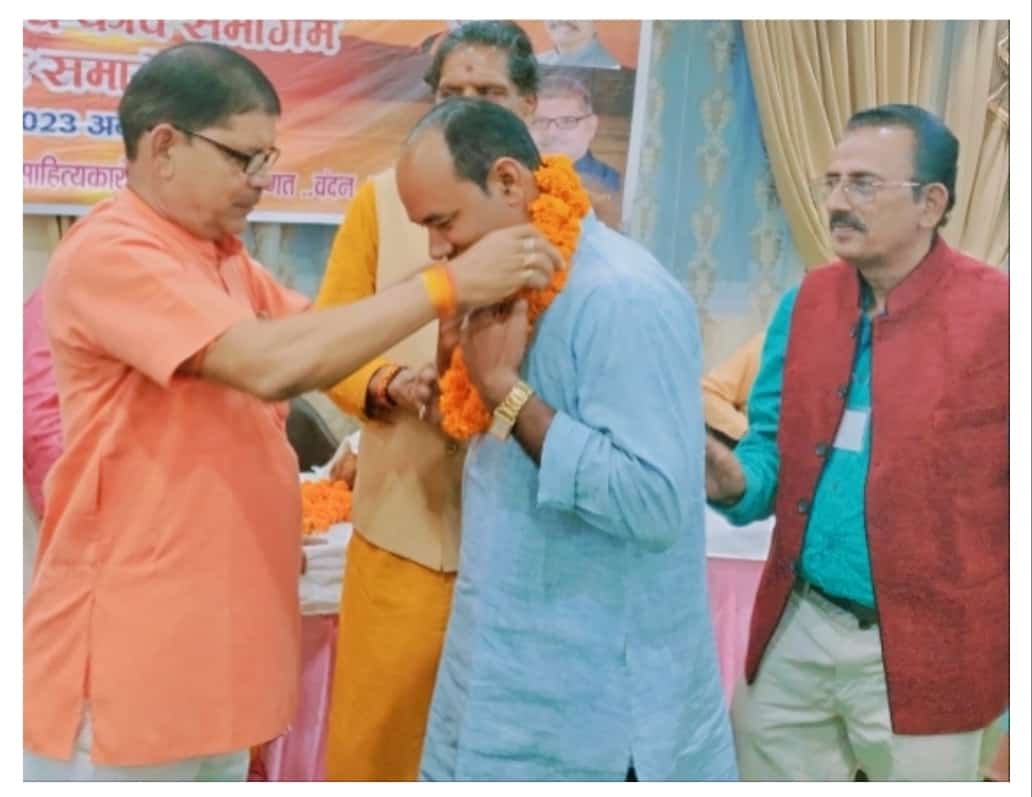 चारों ओर चिरहरित सागौन और महुआ से आच्छादित सुरम्यवादी में रिमझित बारिश, कोहरे, धुँध और हल्की ठंडकता के बीच नर्मदा मैया के चरणों तले आयोजित कार्यक्रम में छत्तीसगढ़ रायगढ़ जिला निवासी युवा साहित्यकार राकेश नारायण बंजारे को पूर्व सांसद फिरोजाबाद डॉ. ओमपाल सिंह ‘निडर’ एवं वरिष्ठ साहित्यकारों के करकमलों से ‘साहित्य गौरव सम्मान 2023’ प्रदान किया गया।