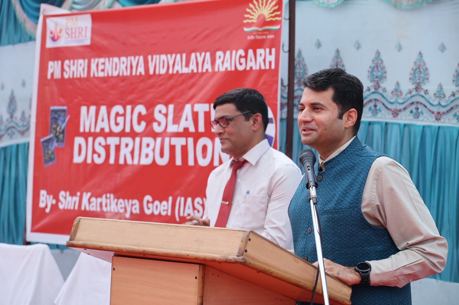 रायगढ़, 26 मार्च 2025/ पीएम श्री केंद्रीय विद्यालय, रायगढ़ में आज मैजिक स्लेट वितरण कार्यक्रम का आयोजन हुआ। जिसमें कलेक्टर श्री कार्तिकेया गोयल शामिल हुए। इस दौरान उन्होंने पीएम श्री योजना अंतर्गत कक्षा पहली एवं दूसरी के कुल 140 बच्चों को मैजिक स्लेट वितरित किए। इस अवसर पर प्राचार्य श्री पी.के.सारंगी उपस्थित रहे।