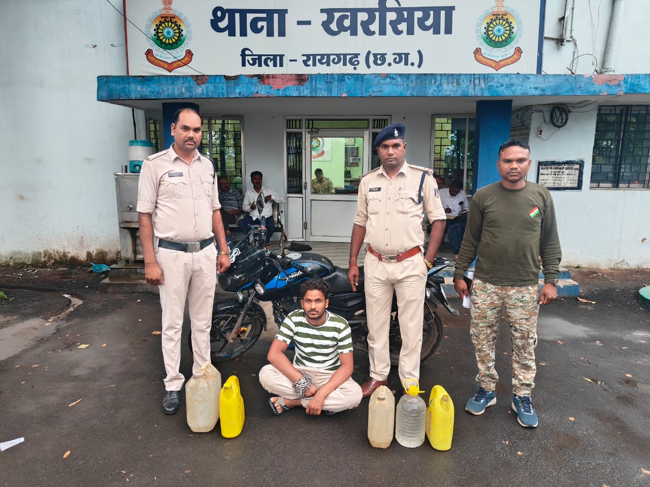 बाइक पर महुआ शराब की तस्करी कर रहे आरोपी को खरसिया पुलिस ने किया गिरफ्तार