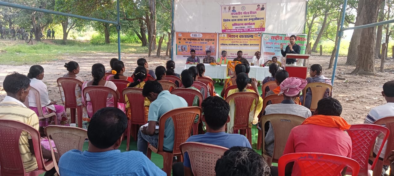 बीजापुर 15 नवंबर 2024/ भगवान बिरसा मुंडा की जयंती पर जनजातीय गौरव दिवस मनाया गया एवं ग्राम पंचायत में विशेष ग्राम सभा का आयोजन किया गया इस कार्यक्रम के तहत संविधान के प्रस्तावना,अनुसूचित क्षेत्रों पर विस्तार पेसा अधिनियम के तहत प्रशिक्षण में बताया गया कि, पेसा अधिनियम के तहत लोगों की परंपराओं और रीति रिवाज तथा उनके सांस्कृतिक पहचान सामुदायिक संसाधनों और विवादों के परंपरागत समाधान के तरीके की सुरक्षा और संरक्षण करने का अधिकार तथा ग्राम सभा गांव के प्राथमिक निर्णय ले सकते हैं।