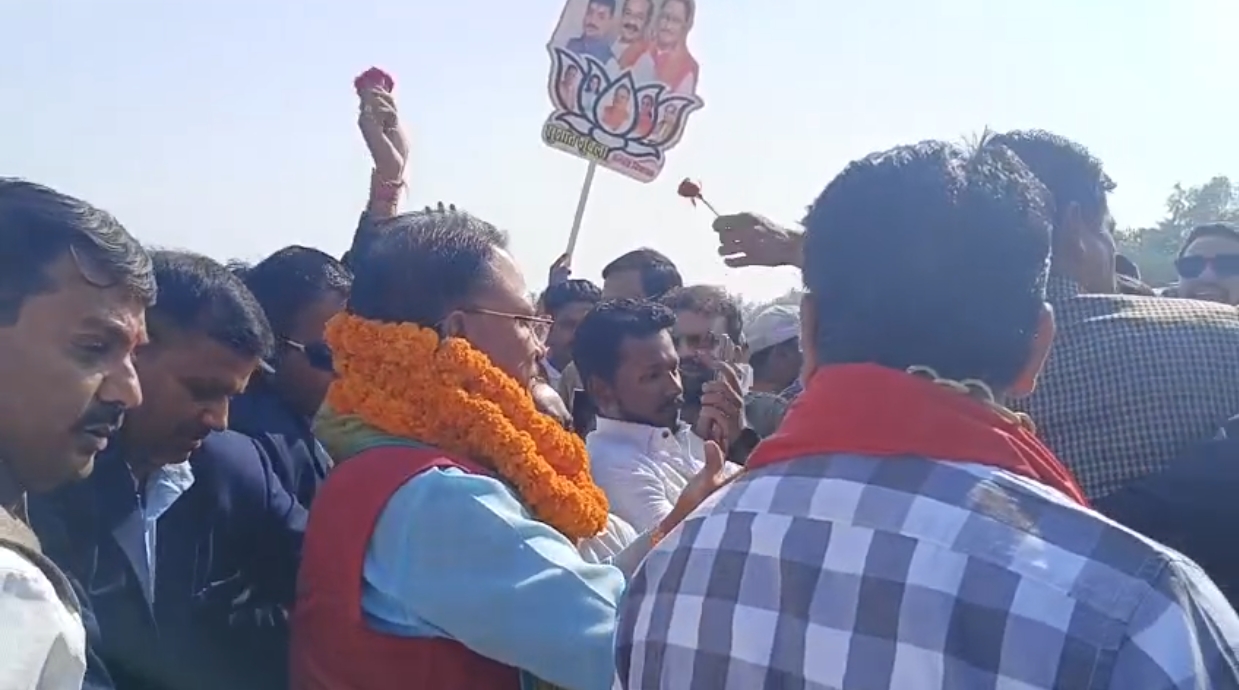 मुख्यमंत्री विष्णु देव साय का हेलीपैड पर जोशीला स्वागत