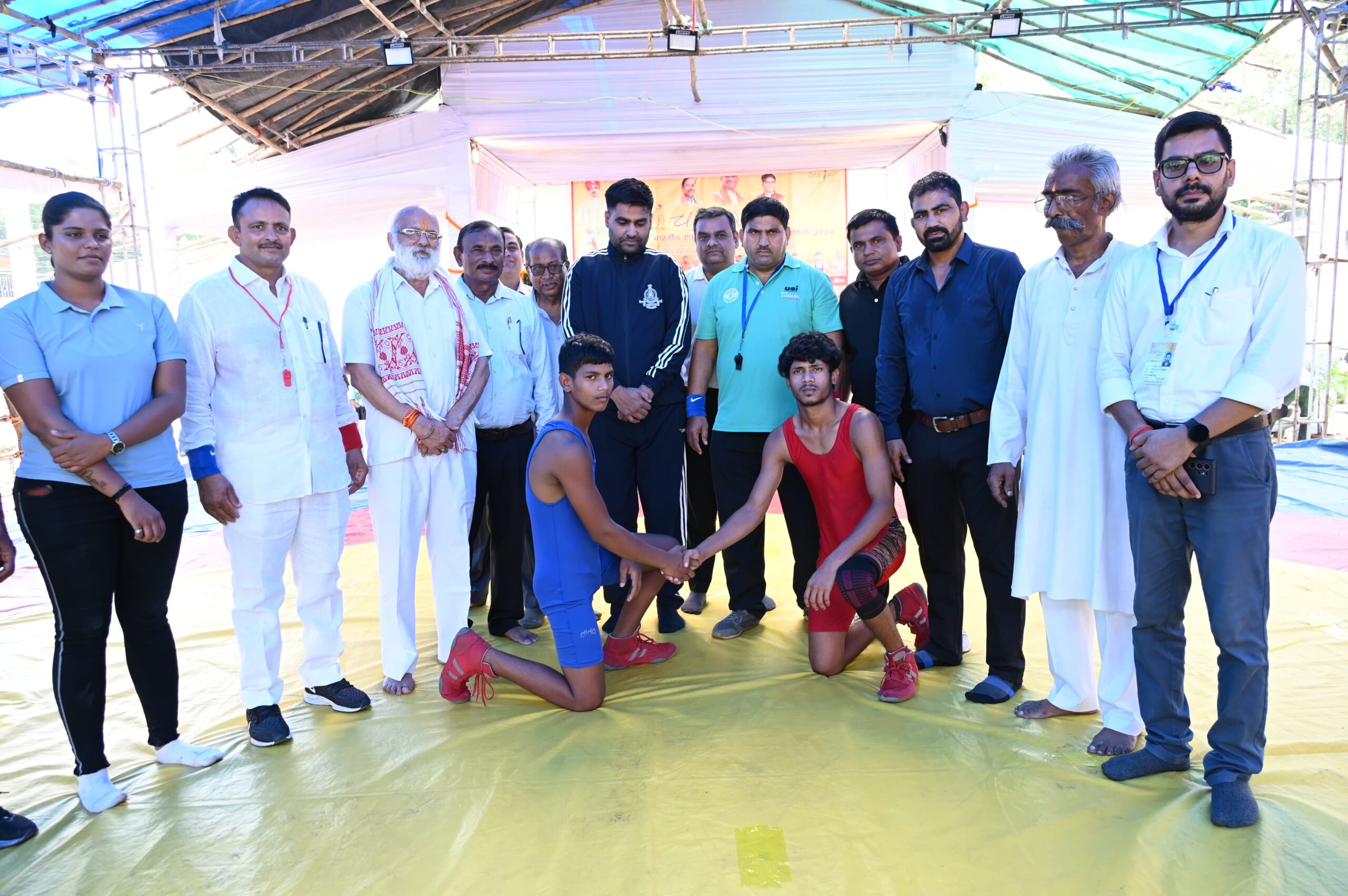 रायगढ़, 11 सितम्बर 2024/ रामलीला मैदान में अखिल भारतीय एवं राज्य स्तरीय कुश्ती प्रतियोगिता का शुभारंभ किया गया। सीईओ जिला पंचायत श्री जितेन्दर यादव एवं अन्य उपस्थित अतिथियों द्वारा बल एवं शक्ति के प्रतीक श्री हनुमान एवं राजा चक्रधर सिंह की प्रतिमा पर माल्यार्पण एवं दीप प्रज्वलन कर कार्यक्रम का शुभारंभ किया गया। कार्यक्रम में मैट की पूजा-अर्चना की गई। सीईओ श्री जितेन्द्र यादव, नगर निगम आयुक्त श्री सुनील चंद्रवंशी ने खिलाडिय़ों से हाथ मिलाया एवं उनसे संक्षिप्त परिचय प्राप्त कर उनका हौसला बढ़ाया और उन्हें शुभकामनाएं दी।