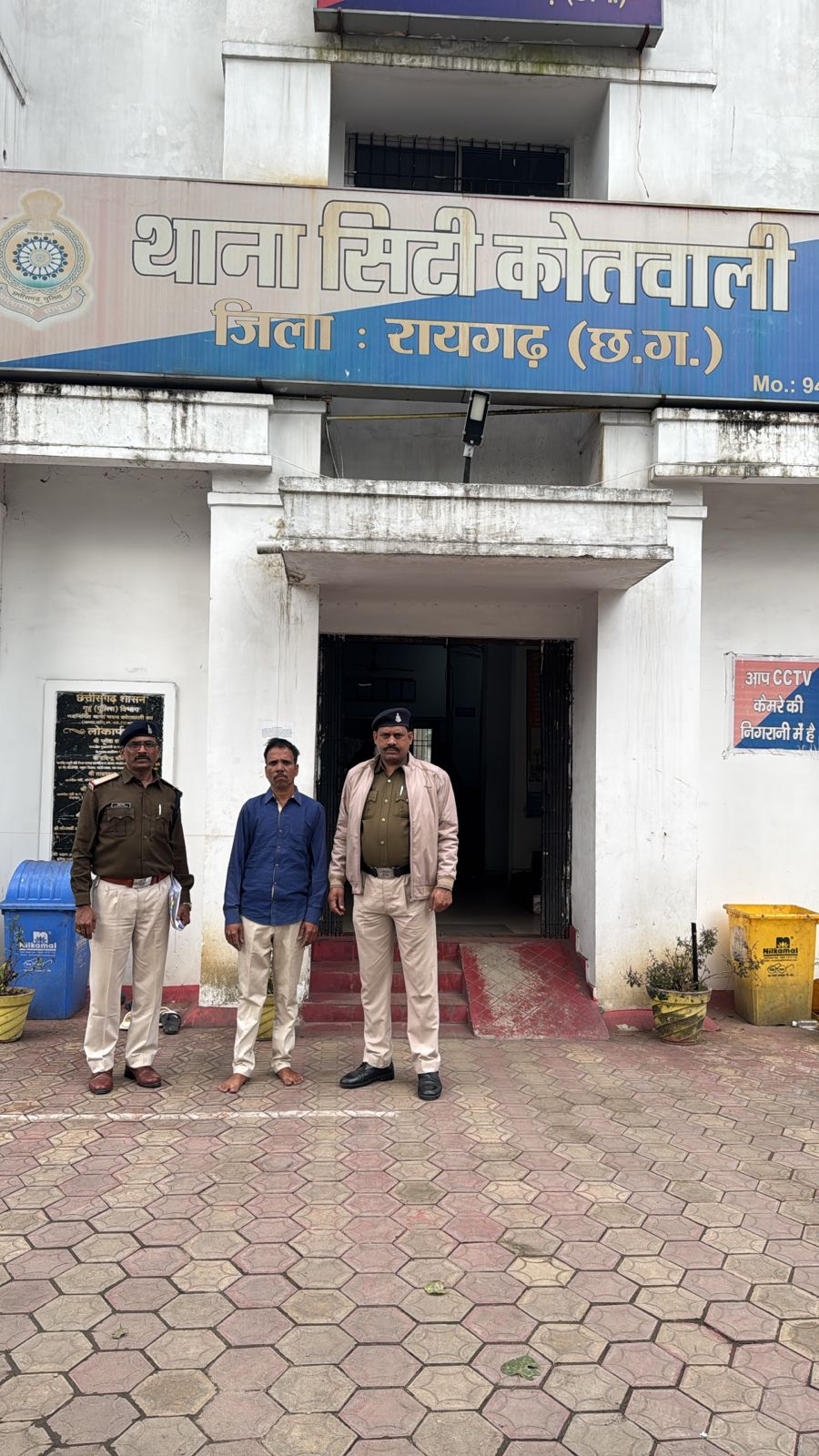 रायगढ़ । छत्तीसगढ़ के बिलासपुर निवासी कौशल प्रसाद कौशिक (66 वर्ष) के साथ 30.61 लाख रुपये की ठगी का मामला सामने आया है। पीड़ित ने 01 दिसंबर को रायगढ़ के सिटी कोतवाली थाने में लिखित शिकायत की गई । एसपी श्री दिव्यांग कुमार पटेल के दिशा निर्देशन एवं एडिशनल एसपी आकाश मरकाम व डीएसपी अभिनव उपाध्याय के मार्गदर्शन पर कोतवाली पुलिस ने मामले की गंभीरता को देखते हुए त्वरित कार्रवाई कर इस बड़े फर्जीवाड़े में मुख्य आरोपी यशवंत पटनायक को गिरफ्तार कर लिया है, धोखाधड़ी में शामिल अन्य आरोपी सतीश साहू और श्रीमती निर्मला निषाद की तलाश जारी है।