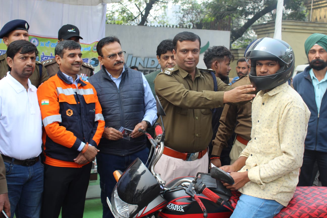 रायगढ़। राष्ट्रीय सड़क सुरक्षा माह 2025 के अंतर्गत रायगढ़ पुलिस ने यातायात नियमों के पालन को बढ़ावा देने नि:शुल्क हेलमेट वितरण किया गया । विदित हो कि पुलिस अधीक्षक श्री दिव्यांग कुमार पटेल के अनूठी पहल के तहत बिना हेलमेट दुपहिया वाहन चालकों के खिलाफ मोटर व्हीकल एक्ट के तहत कार्रवाई कर नि:शुल्क हेलमेट वितरित किए जा रहे हैं । इसी क्रम में आज अतिरिक्त पुलिस अधीक्षक श्री आकाश मरकाम के मार्गदर्शन में आज थाना कोतरारोड़ एवं यातायात पुलिस द्वारा पतरापाली चौक पर बिना हेलमेट दुपहिया वाहन चालकों को नि:शुल्क हेलमेट वितरण किया गया ।