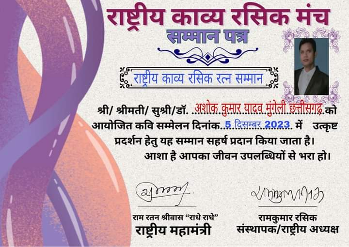 Reading: राष्ट्रीय काव्य रसिक रत्न सम्मान से सम्मानित हुए कवि अशोक कुमार यादव
