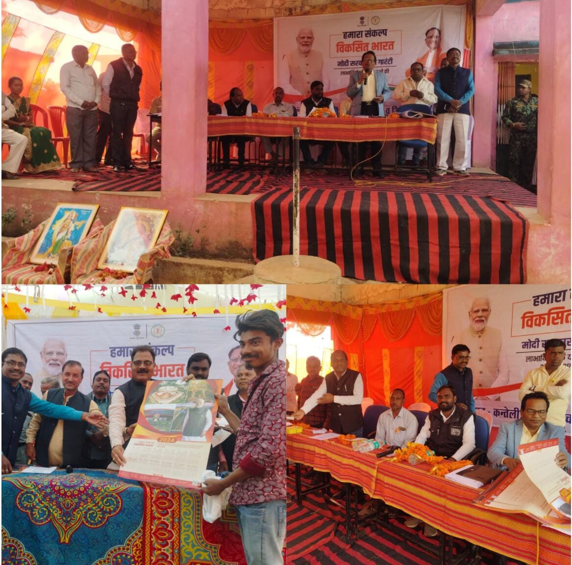 कार्यक्रम में महिलाओं को प्रधानमंत्री उज्जवला योजना के अंतर्गत हितग्राही को घरेलू रसोई गैस कनेक्शन का वितरण किया गया।केन्द्र सरकार की योजनाओं के लाभार्थियों ने ‘मेरी कहानी मेरी जुबानी पहल के तहत अपने अनुभव साझा किए।विकसित यात्रा के दौरान अधिकांश ग्रामीणों की समस्याओं का समाधान किया जा रहा है। महिला सशक्तिकरण और बाल विकास विभाग द्वारा पांच महिलाओं को किट वितरित की गई। स्वास्थ्य विभाग द्वारा व्यक्तियों का निशुल्क स्वास्थ्य परीक्षण और दवाई दी गयी।लगाये गये शिविर में विभिन्न विभागों के अधिकारियों द्वारा भारत सरकार की विभिन्न योजनाओं की जानकारी दी गयी ।पात्र हितग्राहियों का सरकारी योजना से लाभान्वित किया गया। कृषि विभाग के ब्लॉक स्तरीय अधिकारी ने भारत सरकार की प्रधानमंत्री किसान सम्मान योजना, फसल बीमा, स्वायल हेल्थ कार्ड, किसान क्रेडिट कार्ड के फ़ायदे बताये।अधिकारियों द्वारा भारत सरकार की योजनाओं का लाभ लेने कहा। इसके लिए संबंधित विभाग में आवेदन देने कहा।