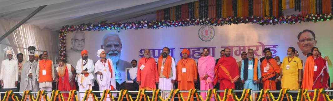 रायपुर, 13 दिसंबर, 2023/संतों के आशीर्वाद से और उनकी पावन उपस्थिति में हुआ कार्य सफलता से संपन्न होता है। आज शपथ ग्रहण समारोह के खास मौके पर साधु समाज को विशेष उपस्थिति और मंच प्रदान किया गया। खास बात यह थी कि इस मौके पर छत्तीसगढ़ में सभी मठों, संप्रदायों के साधु-संतों को विशेष रूप से आमंत्रित किया गया था। इसमें जांजगीर-चांपा के रामनामी संप्रदाय से लेकर सभी पंथ के साधकों को भी आमंत्रित किया गया।