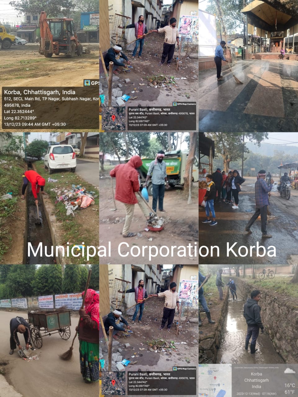 कोरबा 13 दिसंबर 2023/ स्वच्छता ही सेवा अभियान के तहत जिले में स्वच्छ भारत अभियान के तहत् जिले के शहरी एवं ग्रामीण क्षेत्रों में विशेष स्वच्छता कार्यक्रम का आयोजन किया जा रहा है। कलेक्टर श्री सौरभ कुमार के निर्देशन में स्वच्छता कार्यक्रम के तहत् जिले में विशेष स्वच्छता अभियान का आयोजन कर लोगों को स्वच्छता के प्रति जागरूक करने की विशेष पहल की जा रही है। आमजनों को स्वच्छ वातावरण से होने वाले फायदों के बारे में बताते हुए अपने आस पास को स्वच्छ बनाए रखने का आग्रह किया गया।