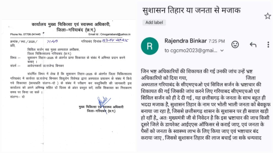 शिकायतकर्ता डॉ. राजेन्द्र बिनकर ने किया सिस्टम की लुंगी खींचने का पाप अब पूरे अस्पताल में पसीना : डॉ. बिनकर ने शिकायत की — कि गरियाबंद जिला अस्पताल में कुछ डॉक्टर ऐसे भी हैं जो अस्पताल को ‘Netflix’ की तरह समझते हैं कभी-कभी लॉग इन करो, सब्सक्रिप्शन चालू रहे बस!’ डॉ. महावीर अग्रवाल और डॉ. निशा नवरत्न का नाम आया जिनका शेड्यूल “हाजिरी दो, तनख्वाह लो, और फिर महीने भर दर्शन मत दो” जैसा बताया गया।