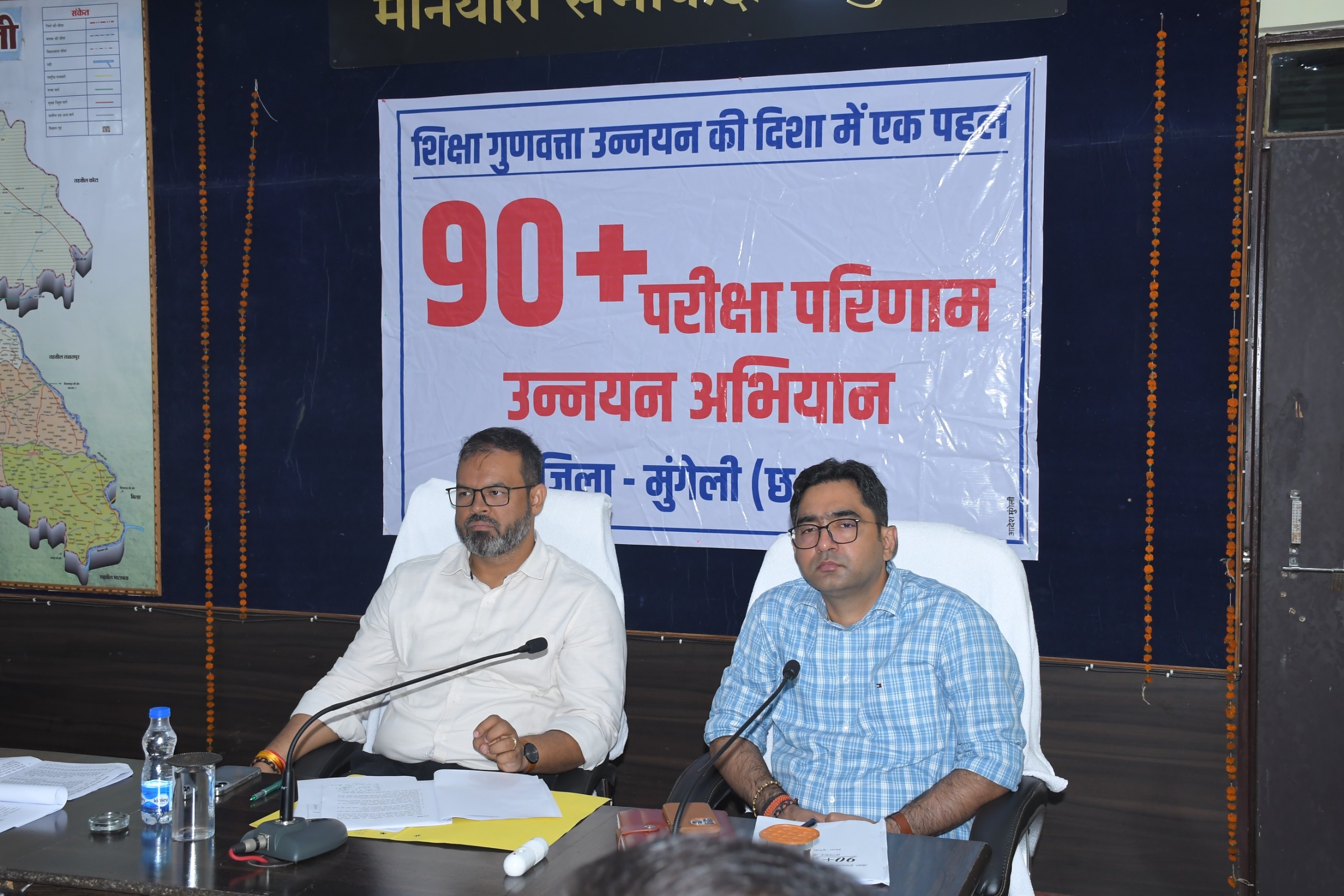 मुंगेली :- 10/07/2025// शिक्षा के क्षेत्र में मुंगेली को एक नई पहचान दिलाने और शिक्षा गुणवत्ता सुनिश्चित सुनिश्चित करने कलेक्टर कुन्दन कुमार, पुलिस अधीक्षक भोजराम पटेल,जिला पंचायत सीईओ प्रभाकर पांडेय के मार्गदर्शन में 90 प्लस परीक्षा परिणाम अभियान चलाया जाएगा। इस संबंध में जिला कलेक्टोरेट स्थित मनियारी सभा कक्ष में कलेक्टर कुन्दन कुमार ने संबंधित अधिकारियों की बैठक ली। बैठक में इस अभियान की कार्ययोजना पर विस्तृत चर्चा की गई। कलेक्टर कुन्दन कुमार ने कहा कि कक्षा 10वीं और 12वीं के छात्रों के बोर्ड परीक्षा परिणामों को बेहतर बनाने एवं शैक्षणिक गुणवत्ता को बेहतर करने के उद्देश्य से 90 प्लस परीक्षा परिणाम अभियान’ की शुरुआत की गई है। इस अभियान का मुख्य उद्देश्य अधिक से अधिक विद्यार्थियों को 90 प्रतिशत या उससे अधिक अंक दिलाना है। जिला प्रशासन एवं शिक्षा विभाग के संयुक्त प्रयास से संचालित इस पहल में शिक्षकों, पालकों और छात्रों की सक्रिय भागीदारी सुनिश्चित की जा रही है। कलेक्टर ने कहा कि 90 प्लस परीक्षा परिणाम अभियान न केवल परीक्षा परिणाम सुधारने की दिशा में एक प्रयास है, बल्कि यह जिले की शिक्षा प्रणाली को मजबूत करने एवं विद्यार्थियों में आत्मविश्वास जगाने की दिशा में भी एक ठोस कदम है। कलेक्टर ने विशेष रूप से अंग्रेज़ी शिक्षा पर ज़ोर देते हुए प्रशिक्षण की बेहतर व्यवस्था करने के निर्देश दिए, साथ ही उन्होंने कि विद्यालयों में अंग्रेज़ी शिक्षा के लिए भी अनुकूल माहौल तैयार करने कहा। उन्होंने शिक्षकों को निर्देशित किया कि विषयवार व्हाट्सएप ग्रुप बनाए जाएं जिनमें छात्र अपने डाउट्स भेजें और शिक्षक वीडियो कॉल के माध्यम से डाउट क्लियर करें। साथ ही उन्होंने सुझाव दिया कि डाउट के समाधान वाले यूट्यूब लिंक भी ग्रुप में साझा किए जाएं जिससे छात्रों को तुरंत मदद मिल सके। उन्होंने स्कूल के बच्चों के व्यक्तित्व विकास के लिए भी बेहतर माहौल तैयार करने की बात कही। उन्होंने स्कूलों में शत प्रतिशत बच्चों की उपस्थिति, पाठ्यक्रम समय पर पूर्ण करने तथा शिक्षा गुणवत्ता को बढ़ाने आदि आवश्यक दिशा निर्देश दिए।