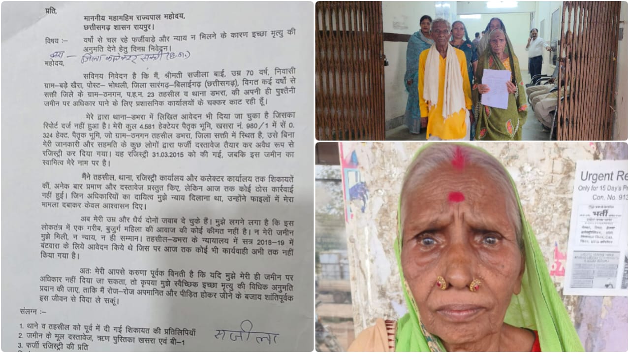ये शब्द हैं 70 वर्षीय बुज़ुर्ग महिला श्रीमती सुजिला बाई के, जो बीते नौ वर्षों से अपनी पुश्तैनी जमीन के लिए न्याय की गुहार लगा रही हैं, लेकिन उन्हें आज तक सिर्फ ठोस आश्वासन और सरकारी दफ्तरों की बेरुखी ही मिली।