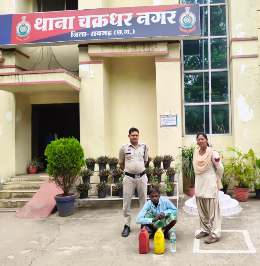 चक्रधरनगर पुलिस की शराब रेड कार्रवाई, ग्राम टारपाली में 11 लीटर महुआ शराब बरामद के साथ आरोपी गिरफ्तार
