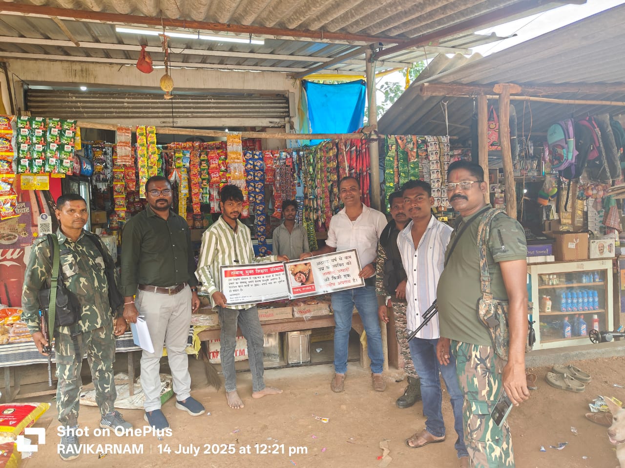 बीजापुर :- 15 जुलाई 2025- राष्ट्रीय तम्बाकू नियंत्रण कार्यक्रम अंतर्गत जिले के भैरमगढ़ ब्लाॅक में किराना दुकानों, पान दुकानों में सिगरेट एवं अन्य तम्बाकू उत्पाद अधिनियम कोटपा एक्ट अंतर्गत जिला प्रवर्तन दल द्वारा चलानी कार्रवाई की गई।