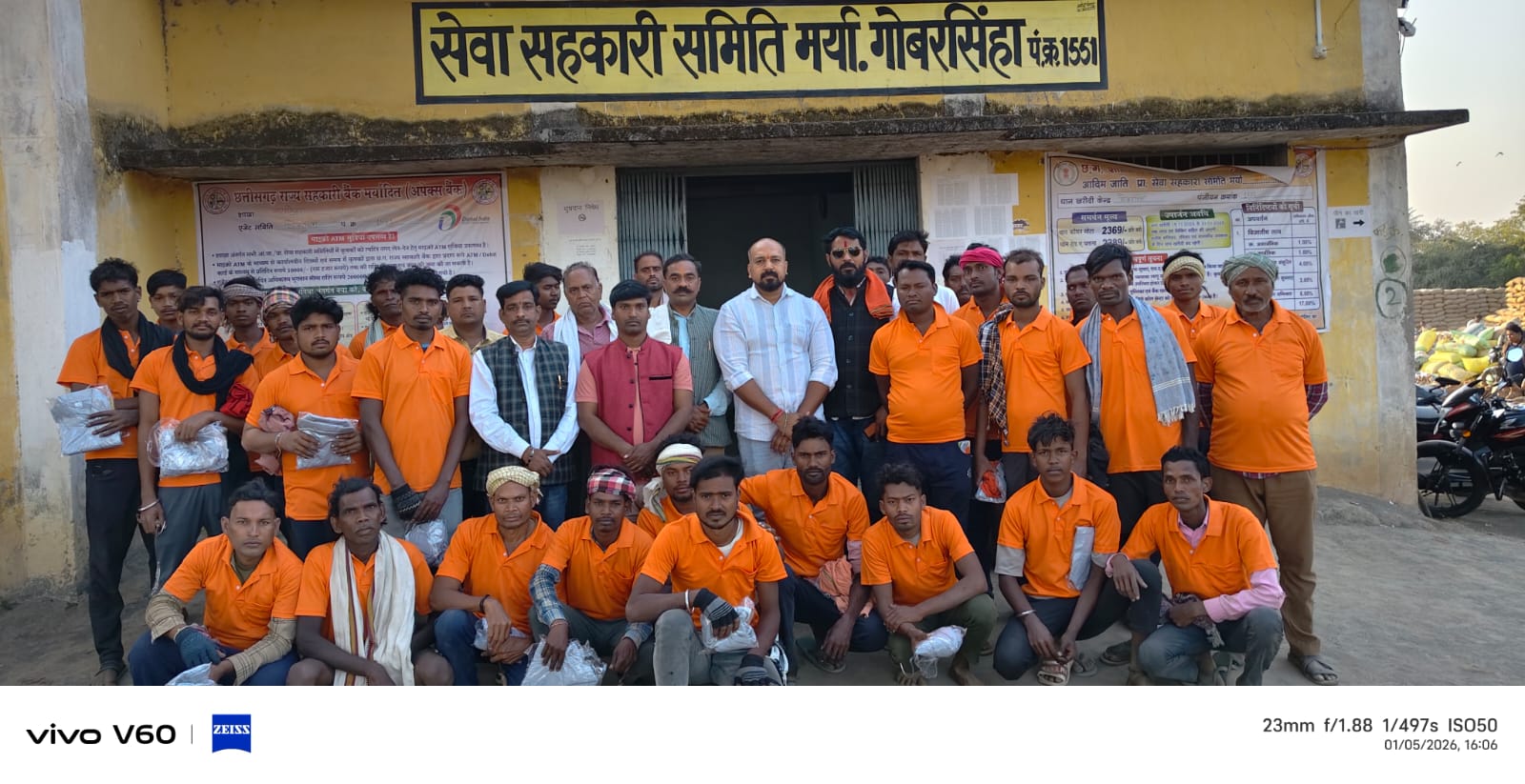 बरमकेला।सारंगढ़-बिलाईगढ़ जिले के बरमकेला विकासखण्ड अंतर्गत धान उपार्जन केंद्र सेवा सहकारी समिति मर्यादित गोबरसिंहा (पं.क्र. 1551) के हमाल अब एक समान ड्रेस कोड में नजर आएंगे। समिति के प्राधिकृत अधिकारी मुरलीधर पटेल की पहल पर धान खरीदी कार्य में लगे सभी हमालों के लिए एक ही रंग का टी-शर्ट तैयार कराया गया।
