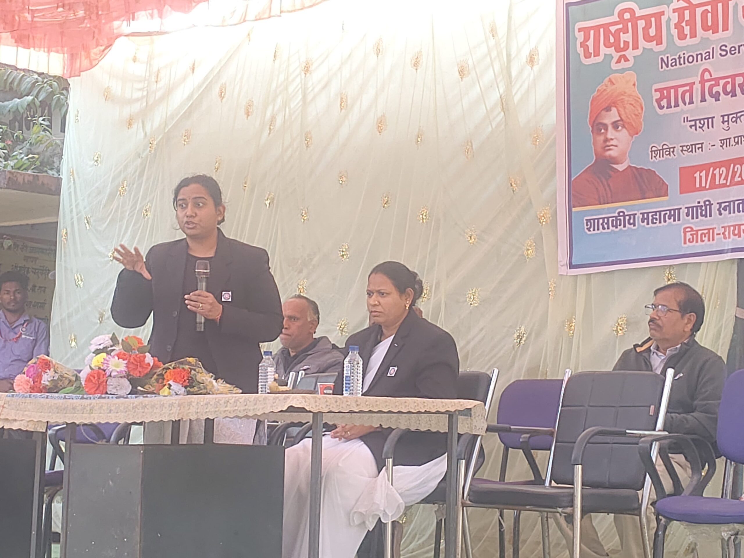 खरसिया :- शासकीय महात्मा गांधी स्नातकोत्तर महाविद्यालय खरसिया की इकाई राष्ट्रीय सेवा योजना (एनएसएस) द्वारा ग्राम पंचायत फरकानारा में सात दिवसीय विशेष शिविर का आयोजन किया गया। यह शिविर 11 दिसंबर से 17 दिसंबर तक “नशा मुक्त समाज के लिए युवा” थीम पर संपन्न हुआ, जिसमें स्वयंसेवकों द्वारा सामाजिक जागरूकता से जुड़े विविध कार्यक्रम आयोजित किए गए।शिविर के अंतर्गत 15 दिसंबर को बौद्धिक परिचर्चा के तहत विधिक साक्षरता विशेष कार्यक्रम का आयोजन किया गया। कार्यक्रम की मुख्य अतिथि व्यवहार न्यायाधीश वरिष्ठ प्रथम श्रेणी न्यायिक मजिस्ट्रेट मृणालिनी कातुलकर एवं विशिष्ट अतिथि न्यायिक मजिस्ट्रेट प्रथम श्रेणी मीनाक्षी नाग रहीं। अतिथियों द्वारा दीप प्रज्वलन कर कार्यक्रम का शुभारंभ किया गया। इस अवसर पर एनएसएस स्वयंसेवकों ने सरस्वती वंदना एवं राज्यगीत का भावपूर्ण गायन प्रस्तुत किया।