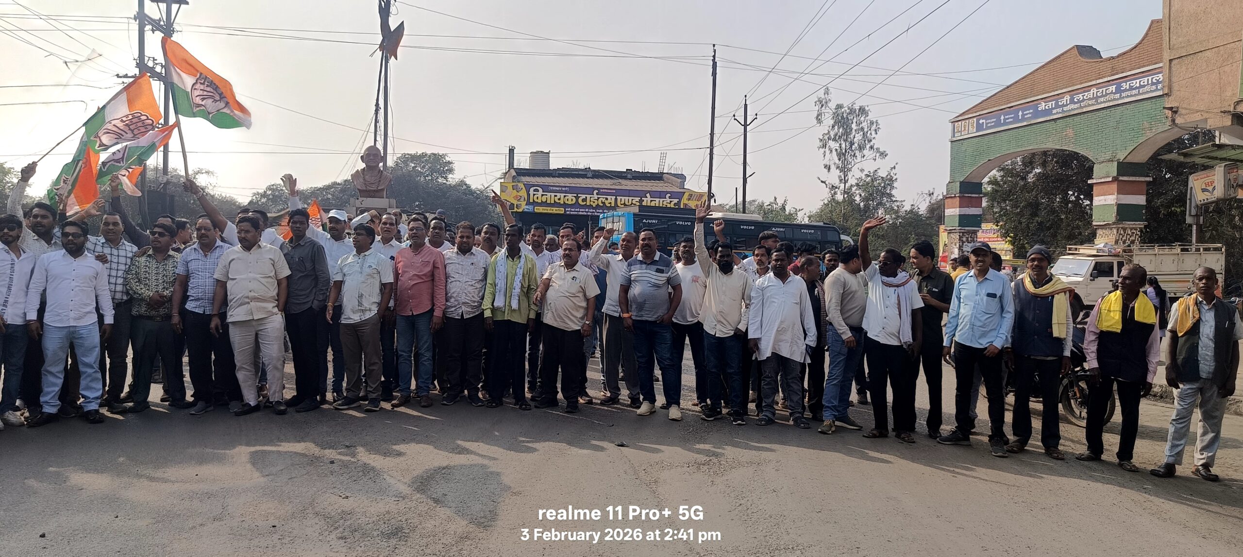 खरसिया, 3 फरवरी 2026। भारतीय राष्ट्रीय कांग्रेस के खरसिया इकाई द्वारा मनरेगा बचाओ संग्राम के बैनर तले महात्मा गाँधी राष्ट्रीय ग्रामीण रोजगार गारंटी योजना ( मनरेगा ) योजना का नाम बदले जाने के विरोध में एकदिवसीय धरना-प्रदर्शन आयोजित किया गया। यह प्रदर्शन रायगढ़ चौक में किया गया, जिसके बाद कार्यकर्ताओं ने रायगढ़ रोड पर चक्का जाम कर विरोध दर्ज कराया।