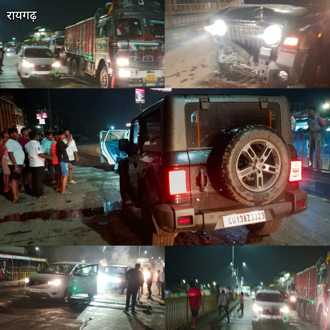 रायगढ़। नेशनल हाईवे स्थित काशीराम चौक पर उस समय हड़कंप मच गया जब काले रंग की थार ने सफेद रंग की इनोवा कार को सिग्नल के पास बने स्पीड ब्रेकर पर पीछे से जोरदार टक्कर मार दी। चश्मदीदों के मुताबिक, थार चालक तेज रफ्तार में था और ब्रेकर पर धीमी हुई इनोवा को थार ने पीछे जोरदार टक्कर मार दी है।